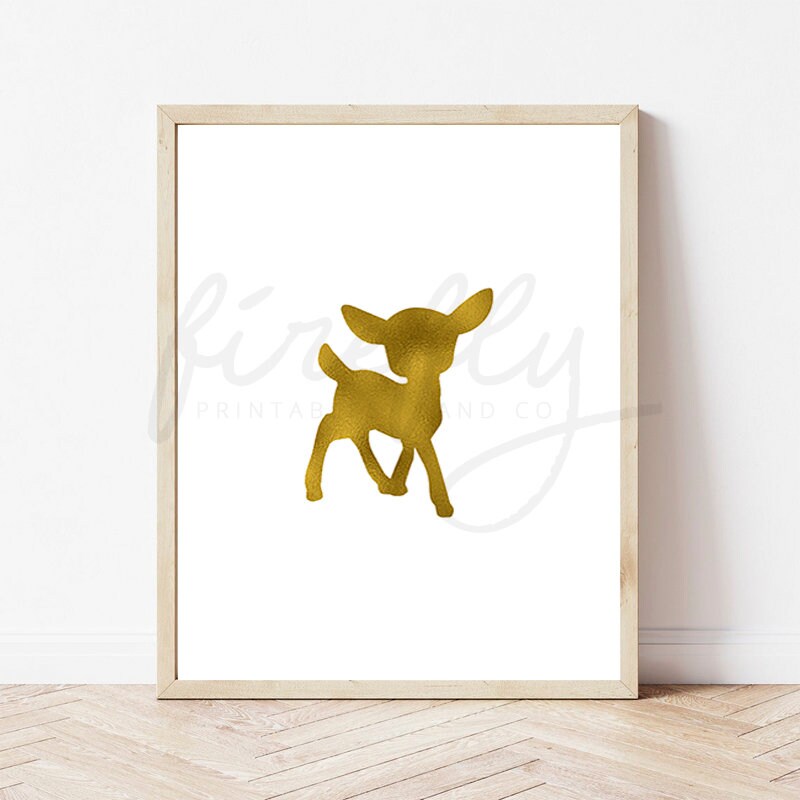Little Deer Bambi Faux Gold Foil - Nursery Wall Art Decor Kids Bedroom Printable Digital Art INSTANT DOWNLOAD