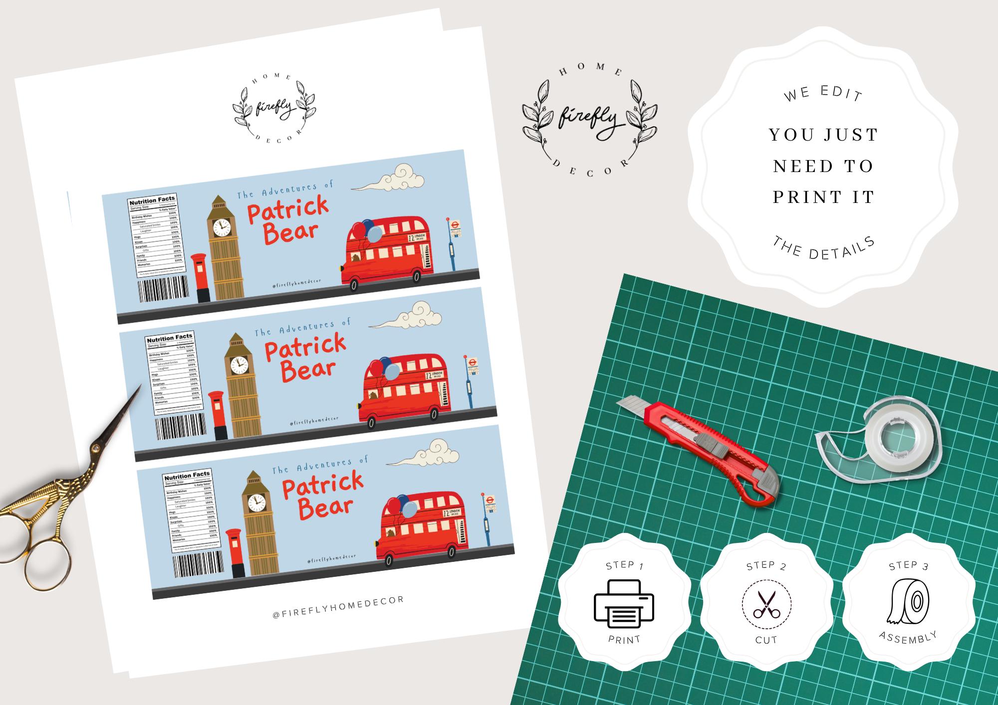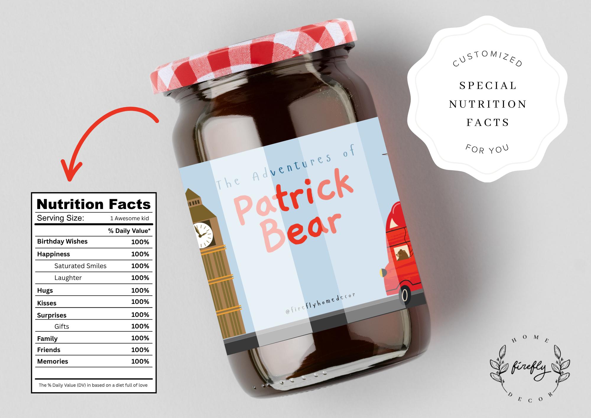3 London Bear Cub Marmalade Jam Jar Label per page 7"x 2.5" Inches Each (CUSTOMIZED)
