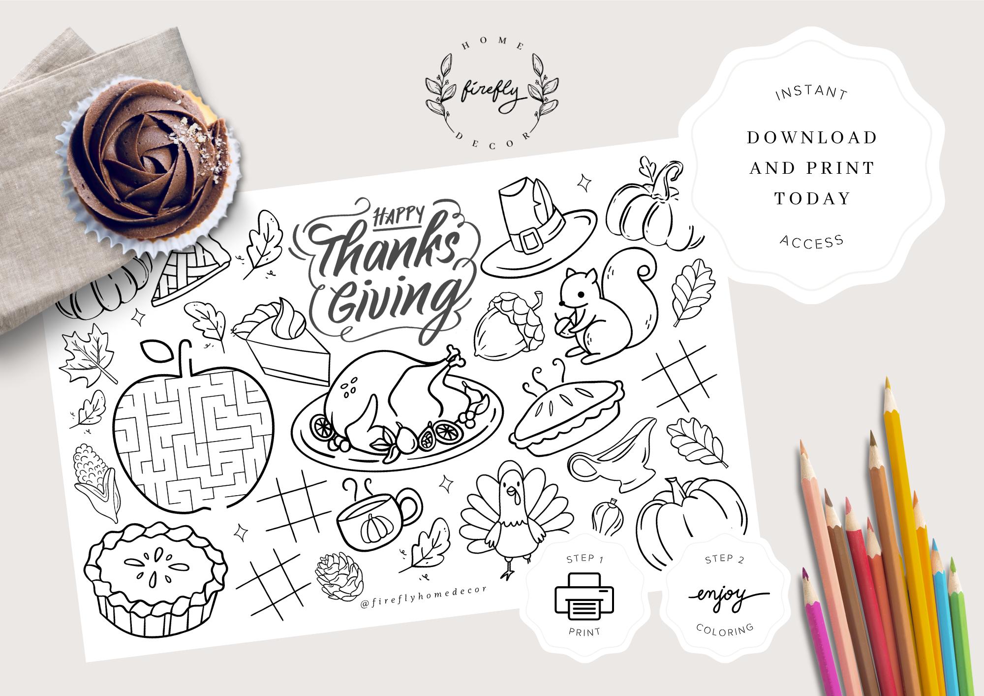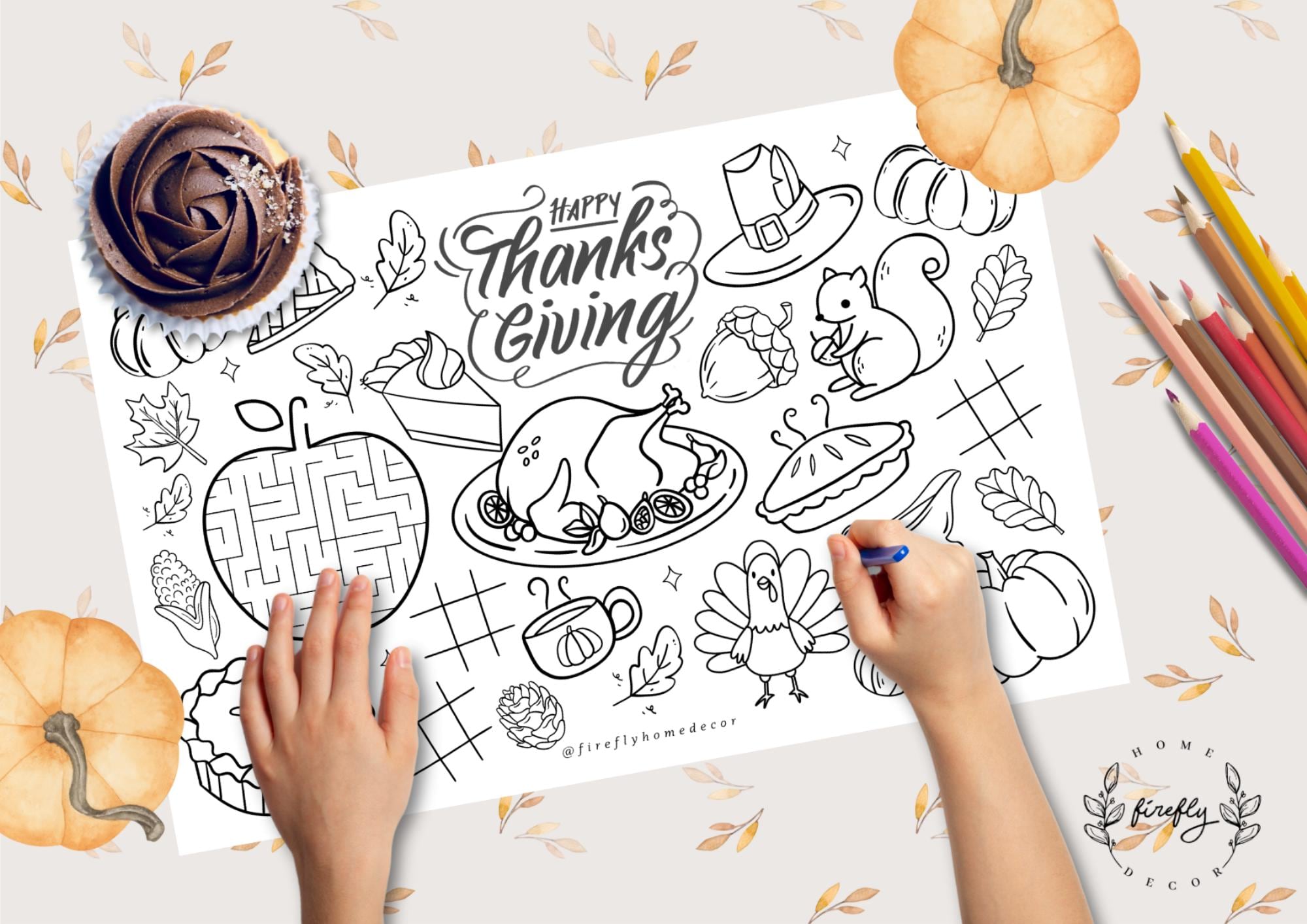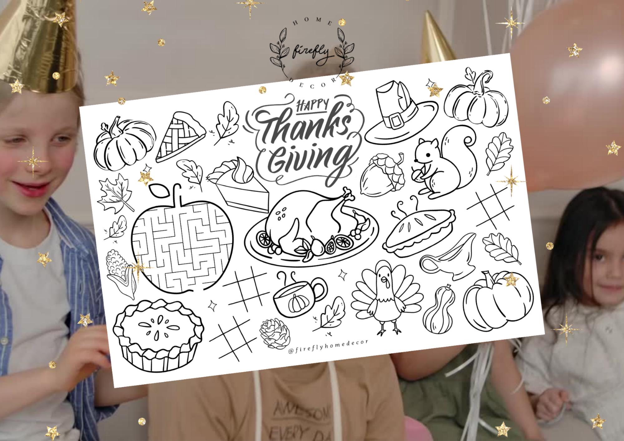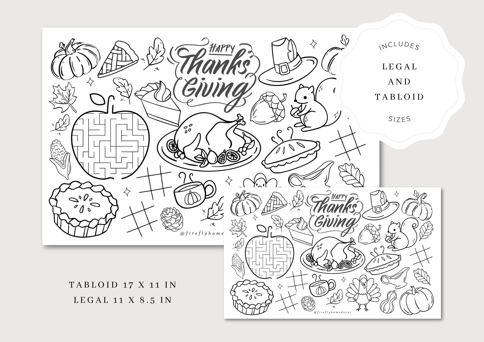 Happy Thanksgiving Coloring Placemat | Party Activity | Kids Coloring Page | Table Mat | Family Games - Printable Digital INSTANT DOWNLOAD