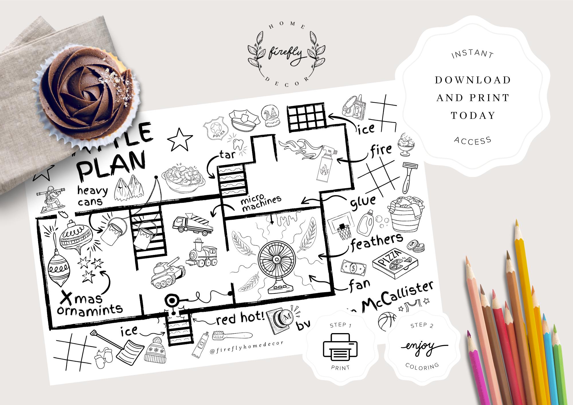 Battle Plan Alone at Home Coloring Placemat | Party Activity | Kids Coloring Page | Mat | Family Games - Printable Digital INSTANT DOWNLOAD