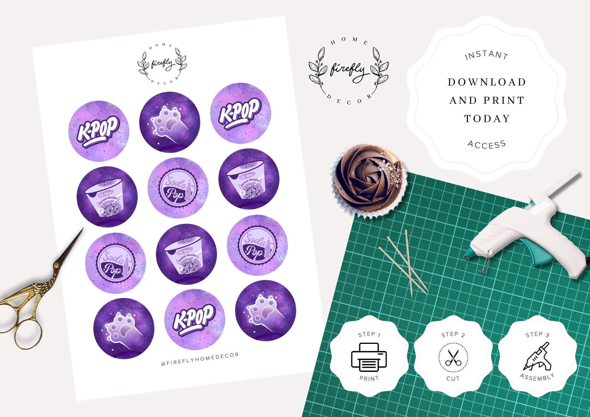 12 Round Cupcake Toppers per page 2"x 2" Inches Each (4 different designs)
