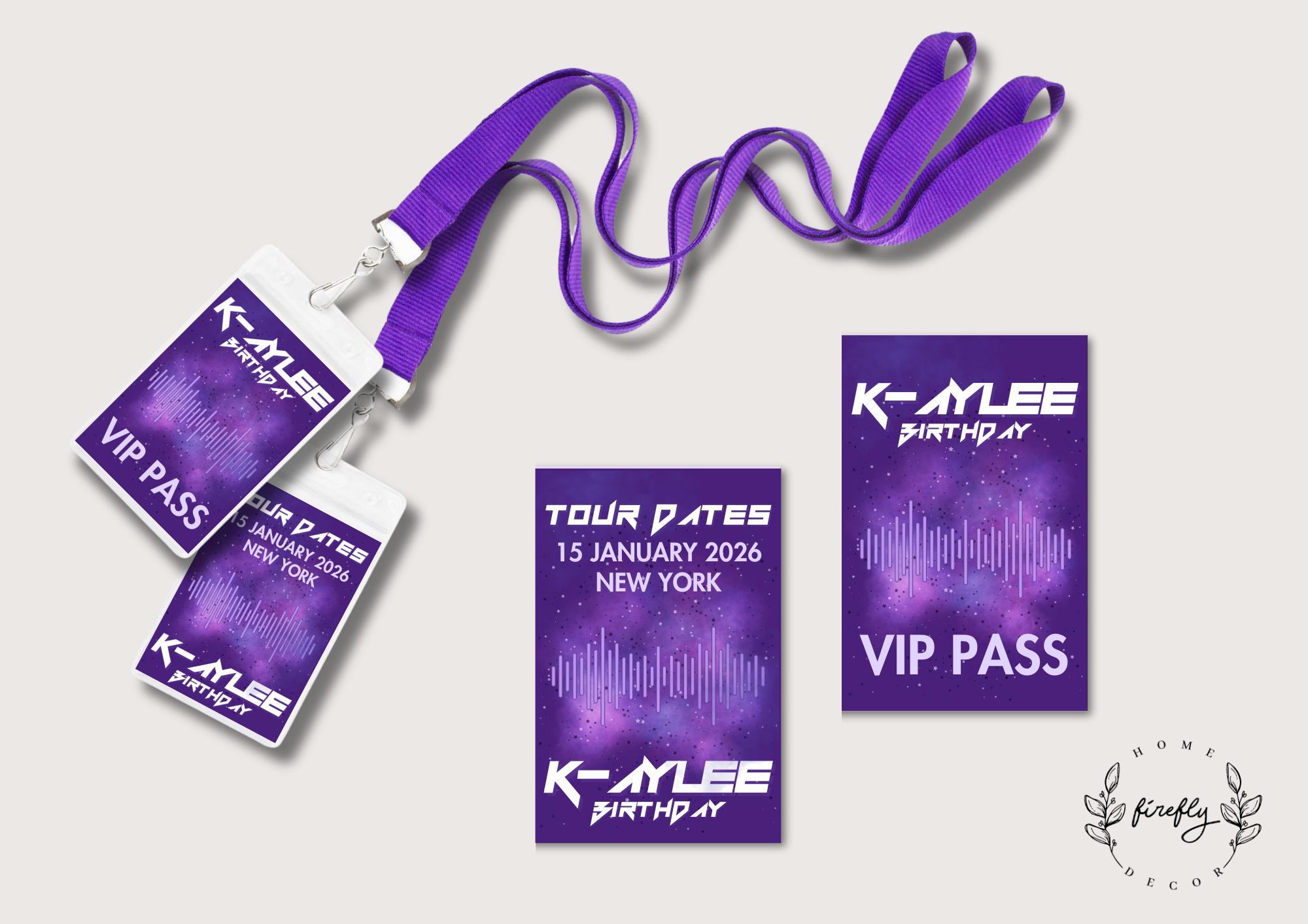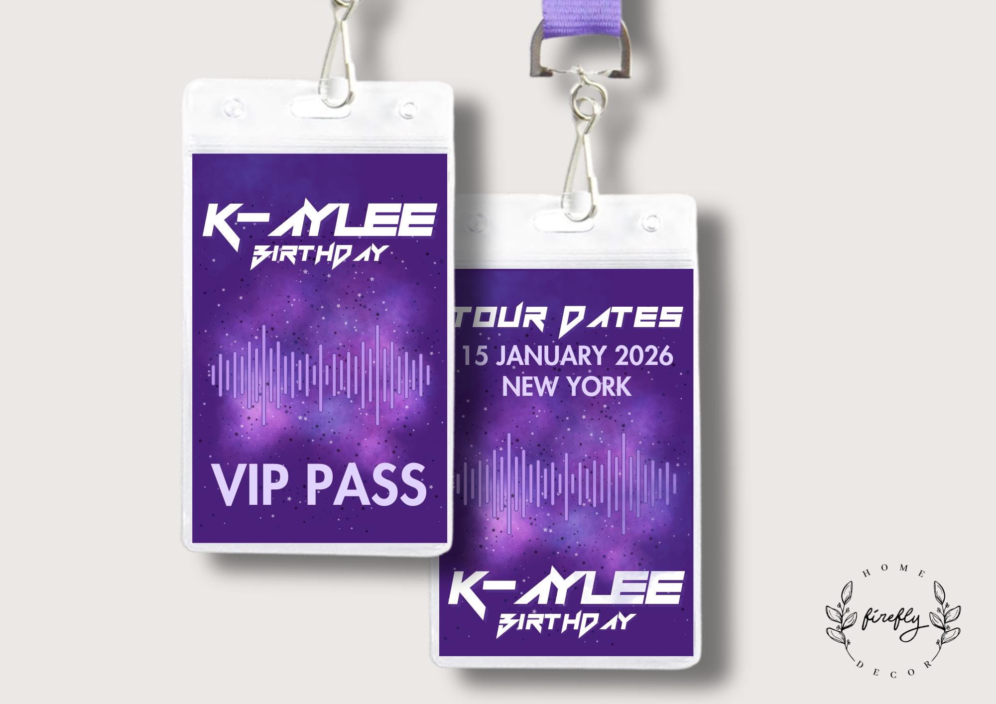 Customized Birthday VIP Party All Access Pass 1.93" X 2.75" Inches (Front and Back)