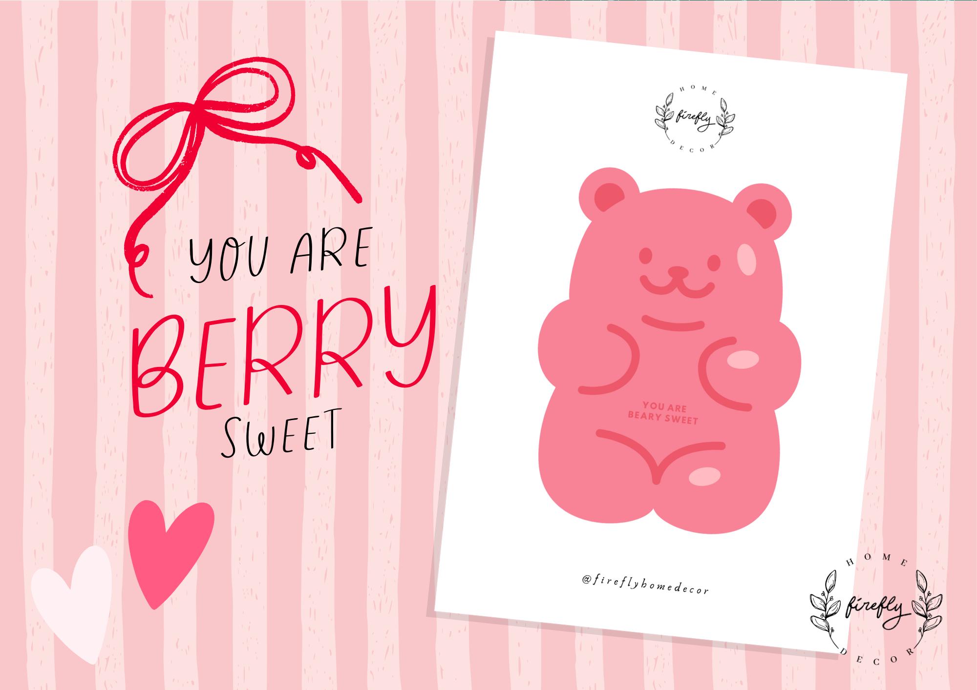 ★ A printable "You Are Berry Sweet" Bear Gummy Card, perfect sweet way to show you care to your classroom friends in Valentine's Day! ★