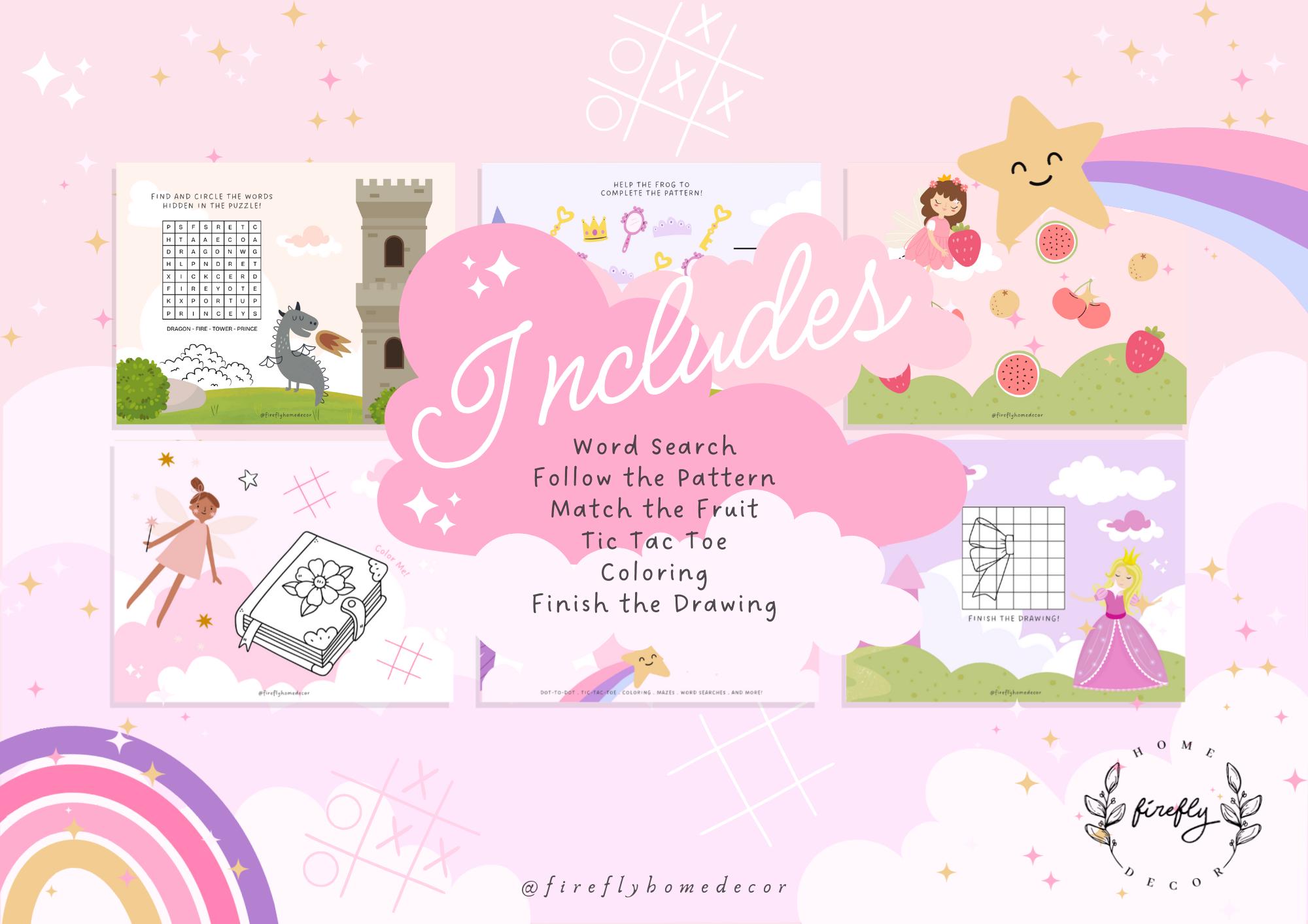 These 32 total printable pages!! 30 Games pages + Front and Back covers is filled with enchanting games and activities for kids 3+, and fun enough for the whole family to enjoy together!